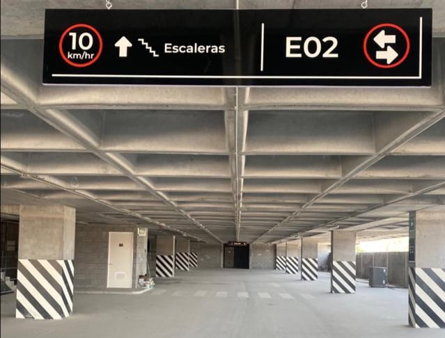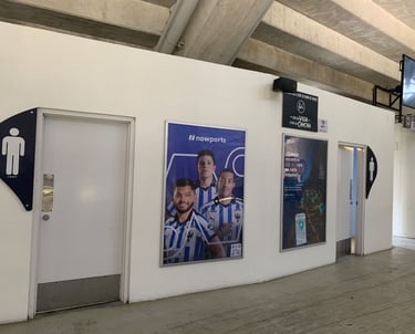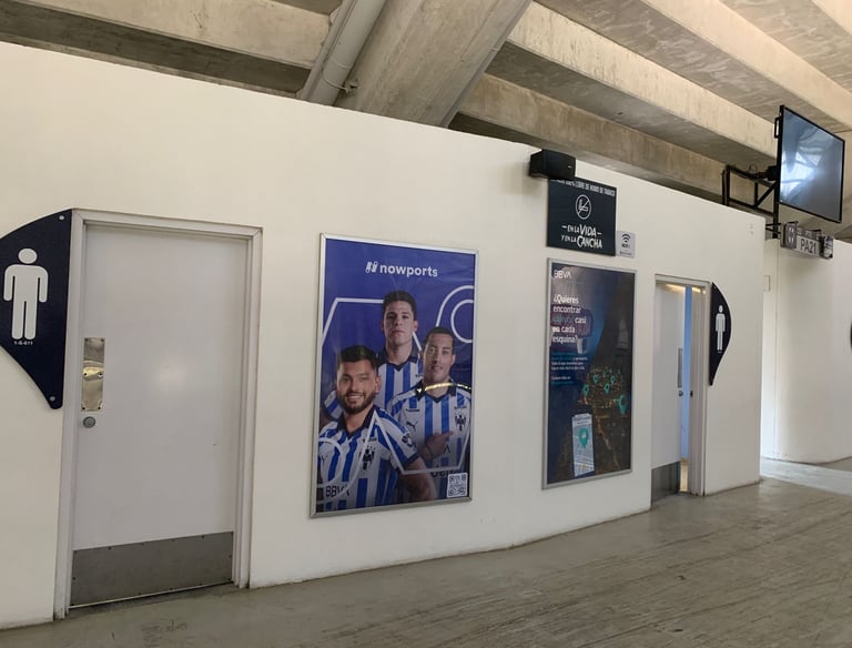 Marco de aluminio con vinil impreso, tapa de acrílico de alto impacto y señalización arquitectónica en estadio BBVA